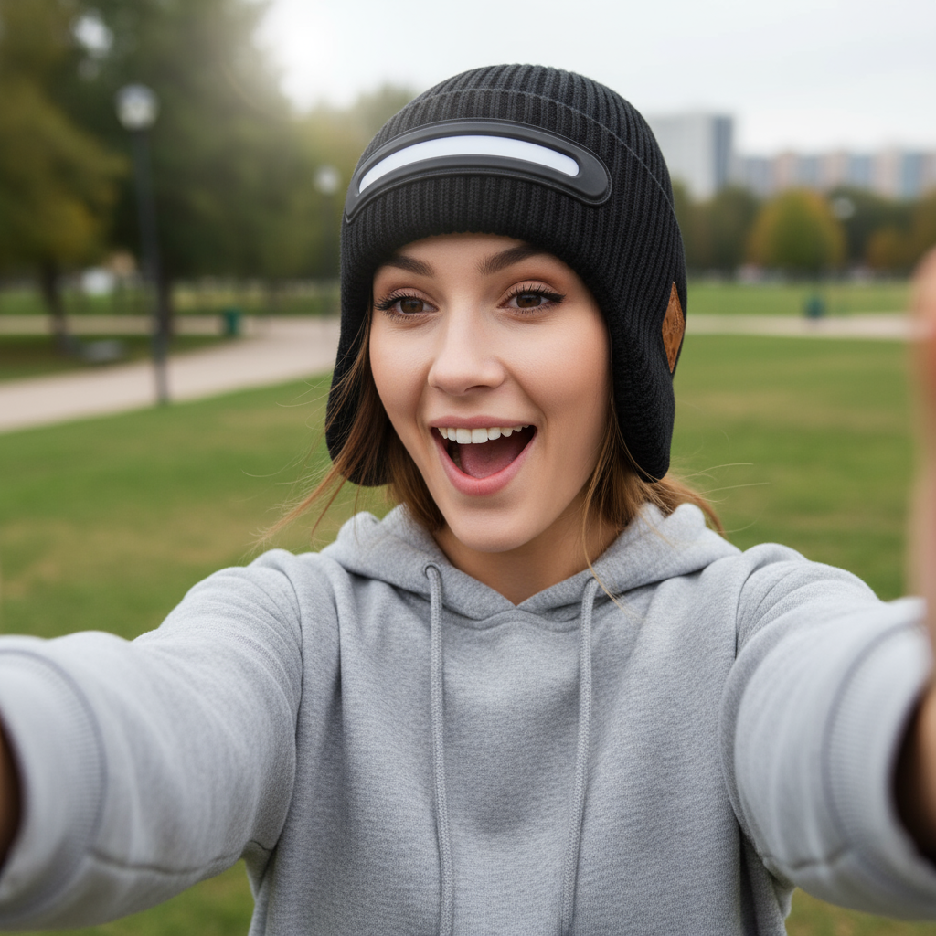 Drivers spot you before you see them—and your path is illuminated the entire run. The Winter Bluetooth Beacon Beanie delivers forward-facing LED light that keeps you visible while your hands stay free to run, walk, or work without juggling a separate headlamp. Your research shows this is the #1 psychological trigger across runners, dog walkers, and commuters: the dual need to be seen AND to see clearly. Unlike traditional beanies (dark and invisible) or separate headlamps (bulky, pointing down), the integrated beacon sits on your forehead, creates a visible light signature for incoming traffic, and gives you the illumination you need to navigate obstacles and uneven terrain. This isn't just a safety feature—it's peace of mind.​