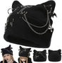 This beanie is crafted for trendsetters in Y2K, goth, and grunge styles. With its whimsical cat ears, punk chain, and bat charm, it captures the essence of alternative fashion and makes a bold statement, effortlessly complementing your unique aesthetic.